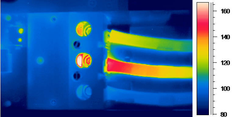 This image is a follow up to an attempted repair of only tightening the center phase lug, despite a recommendation to replace the breaker. Between the time of the initial finding and the follow up, the temperature increased from 140 F to 176 F. The internal temperatures would be higher and moving the breaker closer to failure.